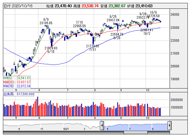 【市況】日経225先物:17日夜間取引終値=120円高、2万3530円
