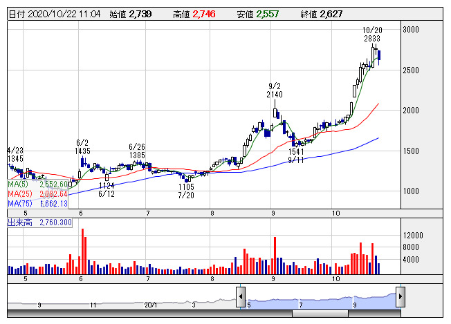 ブイキューブ <日足> 「株探」多機能チャートより■財務省 : 10月22日受付