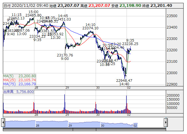 2020年11月02日10時01分 【市況】日経平均の上げ幅が300円突破 日経平均 <5分足> 「株探」多機能チャートより 日経平均株価の上げ幅が300円を突破。10時1分現在、306.52円高の2万3283.65円まで上昇している。 株探ニュース