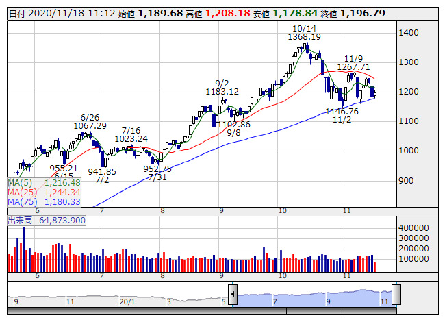 一方、夢展望<3185>、フィーチャ<4052>、ロコガイド<4497>、サイバー・バズ<7069>、ジェイック<7073>など6銘柄が年初来安値を更新。MTG<7806>、くふうカンパニー<4399>、Chatwork<4448>、ログリー<6579>、JMDC<4483>は値下がり率上位に売られた。