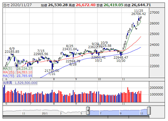 【市況】日経225先物:27日19時=50円高、2万6680円