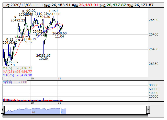 【市況】日経平均8日前引け=3日続落、72円安の2万6475円