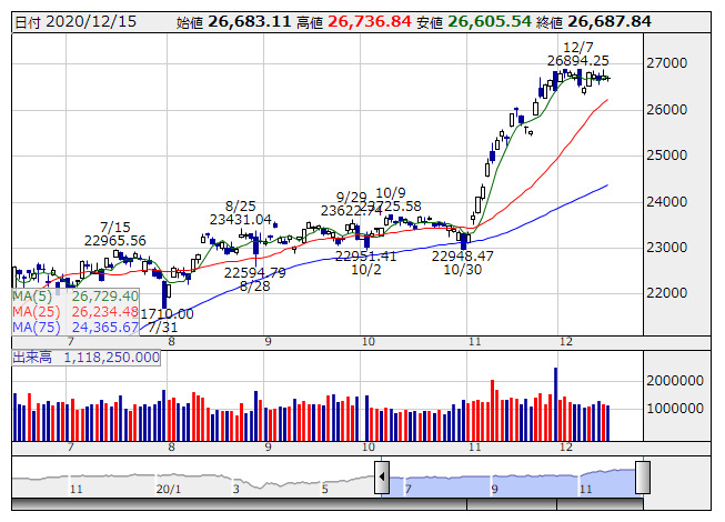 16日の東京株式市場は、主力株をはじめ幅広く買い優勢の展開となり日経平均株価は反発に転じることが予想される。前日の米国株市場ではNYダウなど主要株指数が揃って上昇し、ナスダック総合指数は史上最高値を更新した。米国の追加経済対策協議の進展期待に加え、新型コロナウイルスのワクチンの接種が始まったことで、経済活動正常化への思惑が市場のセンチメントを強気に傾けている。東京市場でもこの流れを引き継ぎ、景気敏感セクターなどを中心に買いが先行しそうだ。日本時間17日早朝に判明するFOMCの結果やパウエルFRB議長の記者会見の結果を見極めたいとの思惑から、積極的に上値を買い進む動きも見込みにくく、2万7000円近辺では売り圧力が強まる可能性もある。