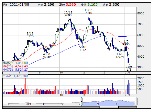 【材料】週間ランキング【値下がり率】 (1月8日)