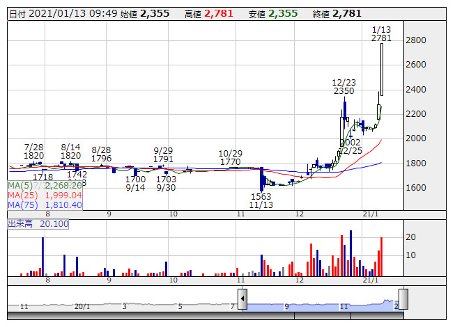 【材料】前場のランキング【値上がり率】 (1月13日)