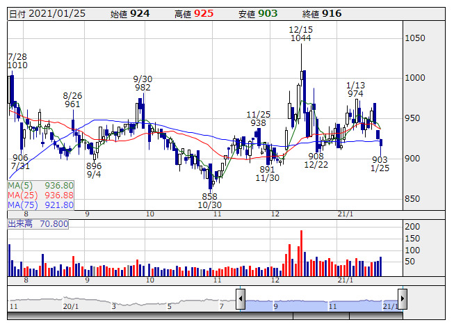 東京計器 <日足> 「株探」多機能チャートより25日引け後に、株主優待制度について新設や拡充、変更、廃止を発表した銘柄を取り上げた。