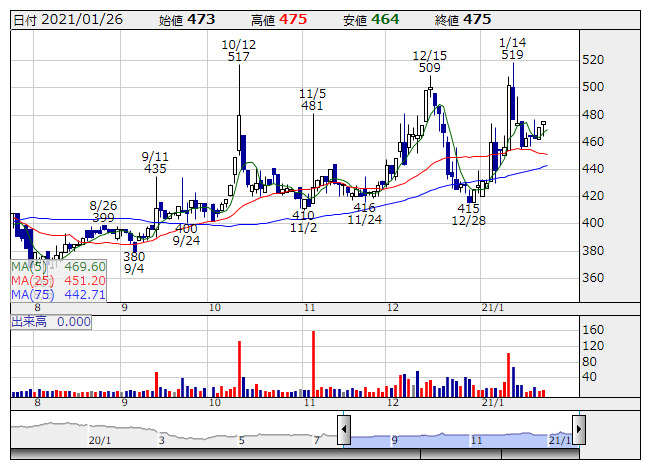 ストップ高買い気配。国内の複合チップモジュールデバイスメーカー向けに次世代半導体チップ実装用特殊ガラスキャリア「HRDP」の量産出荷を開始したと発表。同社は三井金属<5706>が開発したHRDPに薄膜を提供している。出荷先の顧客は今後拡大する5G市場向けデバイスなど様々な用途向けのデバイスをHRDPで製造し、販売を拡大していく計画という。また、2021年度中には海外の大手実装メーカーにおいて採用が予定されているほか、2022年度以降は、モバイル等多様なアプリケーション用途の量産開始が計画されているという。業容拡大への期待感から買い注文が殺到している。