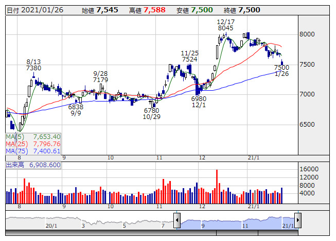 <7203> トヨタ 145.98ドル 7563円 (63円)