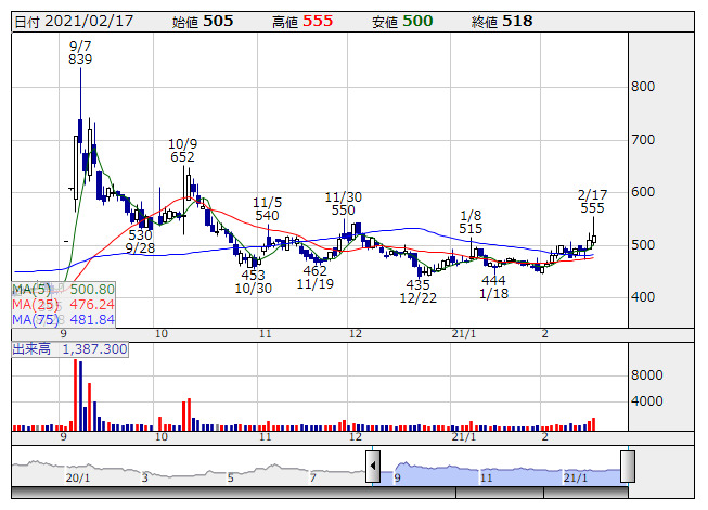 アンファク <7035> 812 +30 ( +3.8%) 6,000 ( 487) 6,000 ( 487)