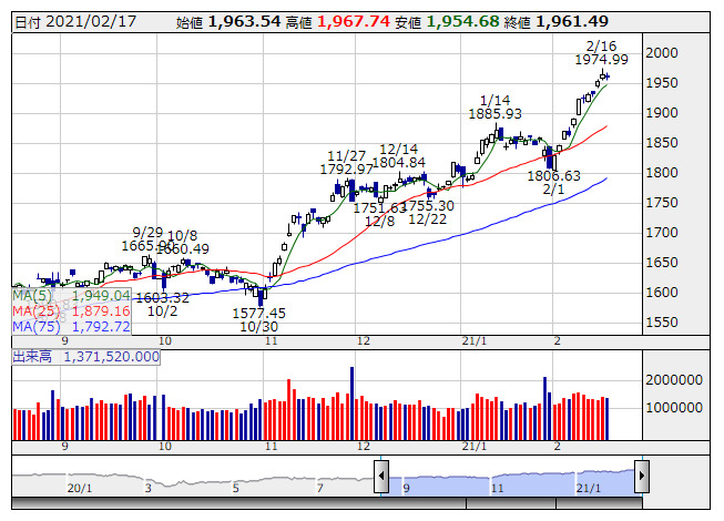 2021年02月18日08時46分 【市況】TOPIX先物:18日寄り付き=5.5ポイント安、1966.5ポイント TOPIX <日足> 「株探」多機能チャートより 18日8時45分、TOPIX先物期近2021年3月限は前日清算値比5.5ポイント安の1966.5ポイントで寄り付いた。前日のTOPIXの現物終値1961.49ポイントに対しては5.01ポイント高。夜間取引の終値1967ポイントに対しては0.5ポイント安となっている。 株探ニュース