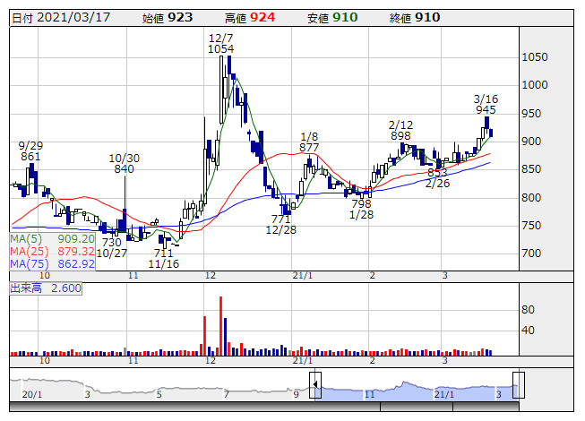 2021年03月17日19時20分 【市況】本日の【自社株買い】銘柄 (17日大引け後 発表分) コスモス <日足> 「株探」多機能チャートより ○コスモス <6772> [東証2] 発行済み株式数(自社株を除く)の2.26%にあたる3万5000株(金額で3185万円)を上限に、3月18日朝の東証の自己株式立会外買付取引「ToSTNeT-3」で自社株買いを実施する。 [2021年3月17日] 株探ニュース