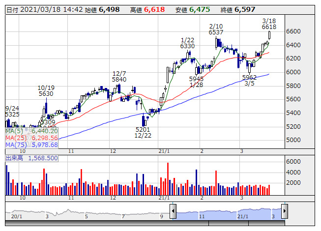 4901>が5日続伸し最高値を更新。東海東京調査センターは17日、同社株の「アウトパフォーム」を継続するとともに目標株価を7000円から8600円に引き上げた。同社は事業ポートフォリオの強化に努め、ヘルスケア事業を将来の柱にすると定め経営資源を投入し、成長させていることを評価。特に、ヘルスケア事業ではバイオCDMO(医薬品の開発製造受託)事業の21年3月期売上高が前年比5割増の1000億円となり、22年3月期中期計画で掲げていた目標を1年前倒しで達成する見通しであることなどに注目している。