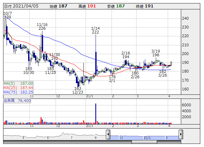 2021年04月05日16時21分 【材料】コックスの3月既存店売上高は5カ月ぶり前年上回る コックス <日足> 「株探」多機能チャートより コックス<9876>がこの日の取引終了後、3月度の月次売上高を発表しており、既存店売上高は前年同月比16.3%増と5カ月ぶりに前年実績を上回った。 緊急事態宣言の解除に伴い来店客数が徐々に回復傾向となったことに加えて、月度後半にかけて気温の上昇とともに薄手の春物や初夏物が好調に推移した。また、新型コロナウイルス感染症が感染拡大した前年からの反動増もあった。なお、全社売上高は同15.0%増だった。 出所:MINKABU PRESS 最終更新日:2021年04月05日 16時51分