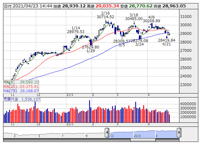 日経平均 <日足> 売買代金 「株探」多機能チャートより個別ではWisdomTree 穀物上場投資信託 <1688> 、UBS スイス株 <1391> 、WisdomTree 農産物上場投資信託 <1687> 、WisdomTree 小麦上場投資信託 <1695> 、WisdomTree とうもろこし上場投資信託 <1696> など6銘柄が新高値。WisdomTree ニッケル上場投資信託 <1694> が新安値をつけた。