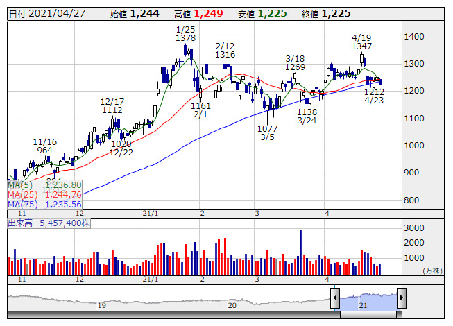 ルネサス <日足> 「株探」多機能チャートより【注目スケジュール】