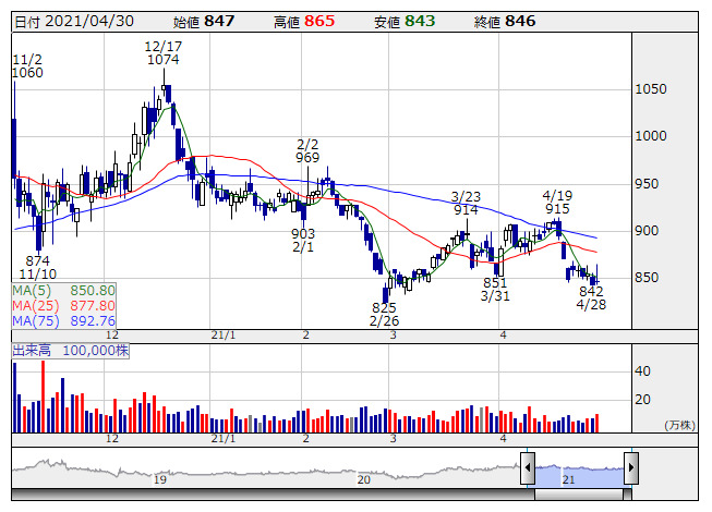 発行済み株式数(自社株を除く)の0.7%にあたる30万株(金額で3億円)を上限に自社株買いを実施する。買い付け期間は5月17日から22年3月31日まで。