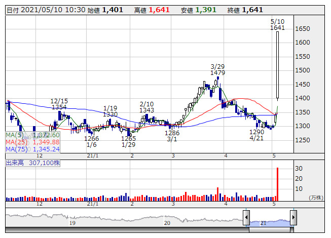 【材料】前場のランキング【寄付からの値上がり率】 (5月10日)