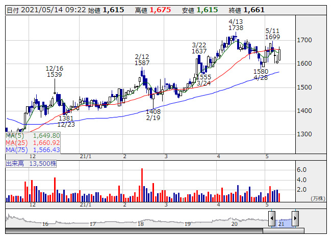 2021年6月期通期については、同日、連結業績予想の上方修正を発表した。売上高が前期比16.4%増(前回予想比6.0%増)の71.00億円、営業利益が同43.1%増(同6.7%増)の8.00億円、経常利益が同35.5%増(同12.5%増)の9.00億円、親会社株主に帰属する当期純利益が同40.9%減(同50.0%増)の3.00億円としている。また、通期業績予想の上方修正に伴い、期末配当についても、1株当たり27.00円から32.00円への上方修正を発表した。