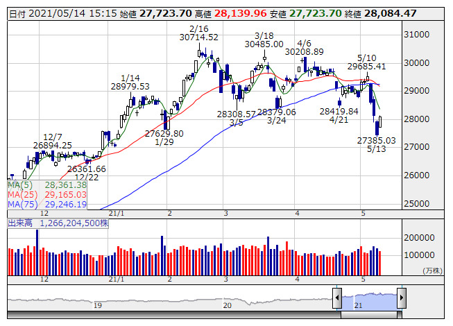 ・推移レンジ:高値6437円-安値6414円