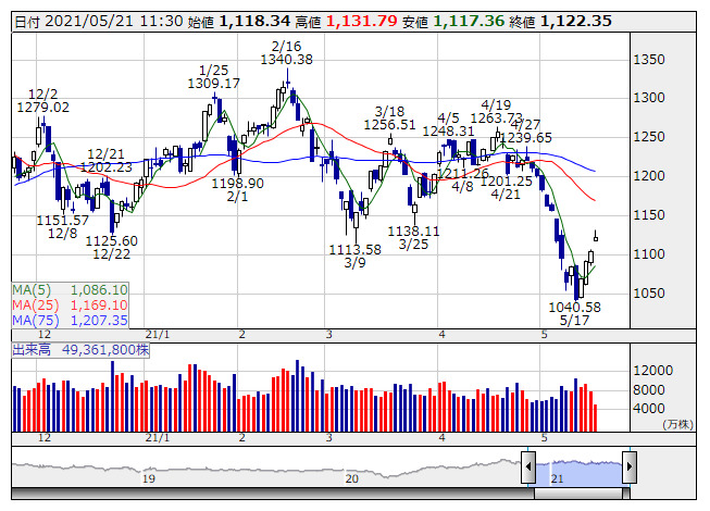 一方、コラボス<3908>、くふうカンパニー<4399>が年初来安値を更新。海帆<3133>、うるる<3979>、フルッタフルッタ<2586>、リビングプラットフォーム<7091>、ロコガイド<4497>は値下がり率上位に売られた。