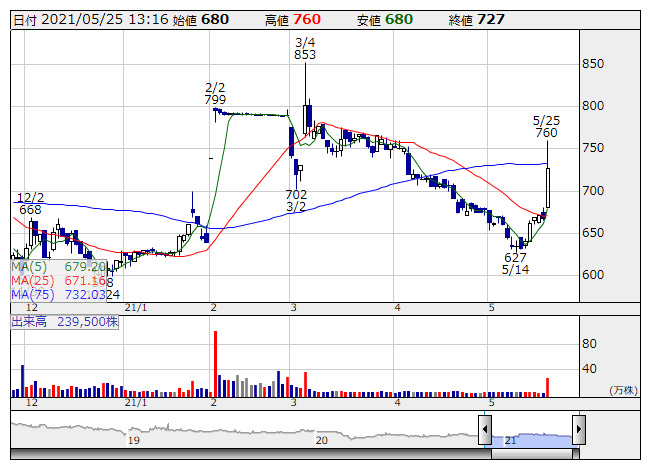 大幅反発。厚生労働省の再生医療等製品・生物由来技術部会で角膜上皮幹細胞疲弊症の治療を目的とした自家培養口腔粘膜上皮の製造販売承認が審議され、了承されたと発表している。患者自身の口腔粘膜組織を採取して作製する上皮細胞シートで、患者の眼表面に移植して欠損した角膜上皮を修復する。角膜上皮幹細胞疲弊症で両眼の角膜が広範囲に障害を受けた患者に対する新たな治療法として期待されるという。