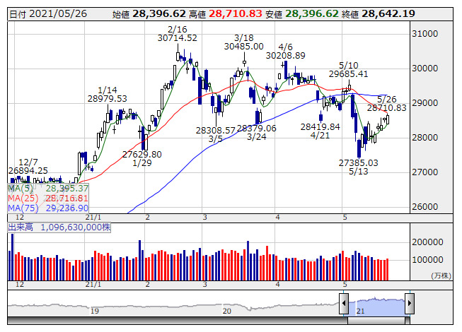 日経平均 <日足> 「株探」多機能チャートより[強弱材料]