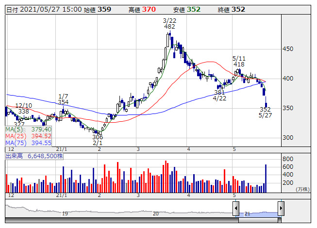 人気化。親会社であるStar Asia Opportunity III LPとの間でコミットメントライン契約を締結したと前日に発表している。借入極度額は9億円、コミットメント期間は5月31日から1年間となっている。機動的な運転資金の調達が可能となることで、積極的な成長戦略をより確実なものにするとしている。目先の財務懸念の後退につながるとの見方が優勢になっているようだ。