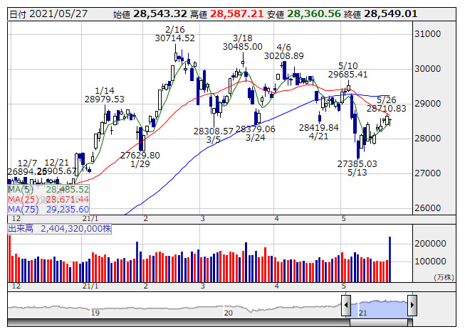 【市況】日経225先物:27日19時=20円高、2万8550円