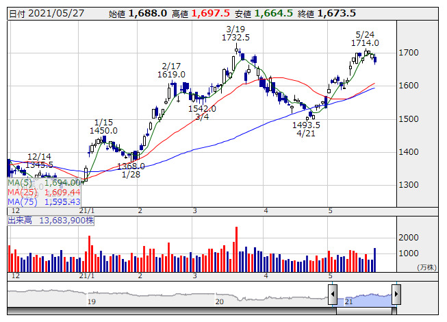 <7453> 良品計画 1628 ( 7) 2,113 0 ( 0.0%)
