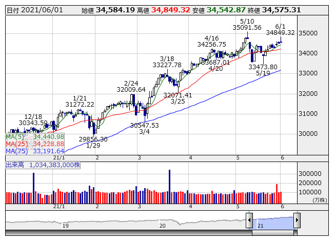 NYダウ <日足> 「株探」多機能チャートより[強弱材料]