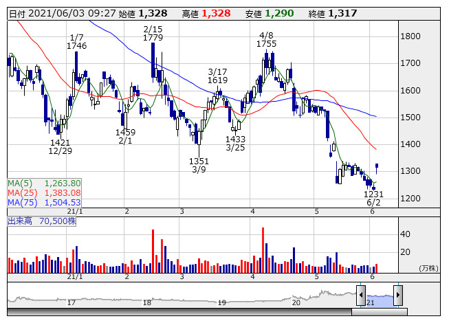 2021年06月03日09時26分 【材料】チエルが急反発、上限2.56%の自社株買い発表を好感 チエル <日足> 「株探」多機能チャートより チエル<3933>が急反発。株価は一時、前日に比べ7%強上昇した。2日取引終了後、上限3億円、20万株(発行済み株式数の2.56%)の自社株買いを実施すると発表したことが好感されている。取得期間は6月7日から9月30日まで。 出所:MINKABU PRESS