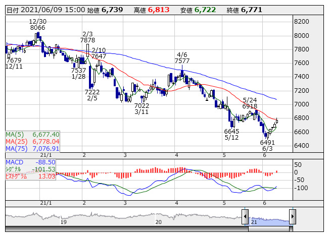 <4452> 花王 6771 +58 ( +0.9%) -88.5
