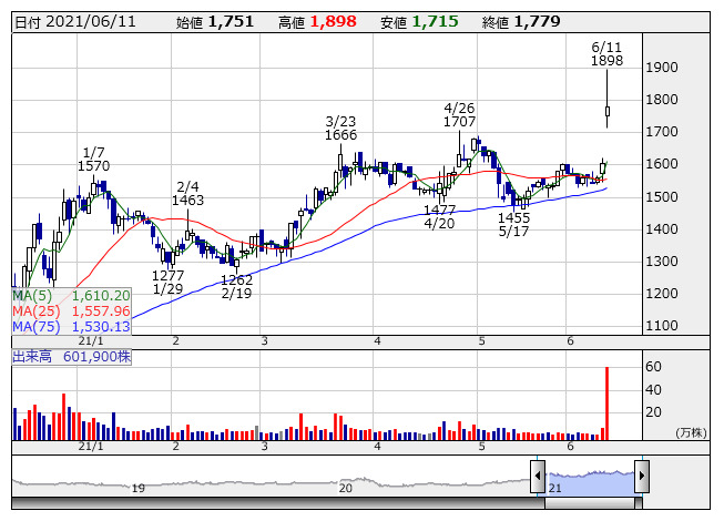 四半期業績が好調だったアセンテック <3565> 、ビジョナル <4194> [東証M]、トビラシステムズ <4441> 、巴工業 <6309> 、アイモバイル <6535> のほか、業績上方修正を発表したシステム ディ <3804> [JQ]、ラクスル <4384> 、クミアイ化学工業 <4996> 、今期増益を見込む神島化学工業 <4026> [東証2]は大きく値上がりした。