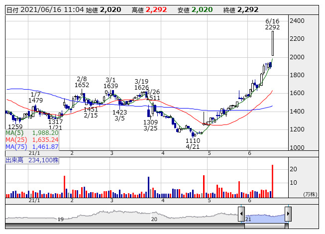 【材料】前場のランキング【寄付からの値上がり率】 (6月16日)