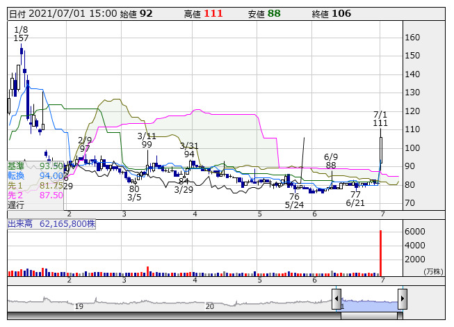 【テク】本日の【均衡表|3役好転/逆転】引け 好転= 37 銘柄 逆転= 95 銘柄 (7月1日)