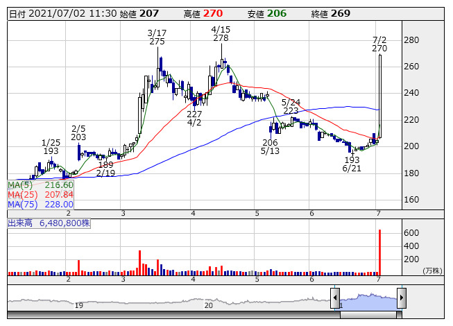【材料】前場のランキング【値上がり率】 (7月2日)