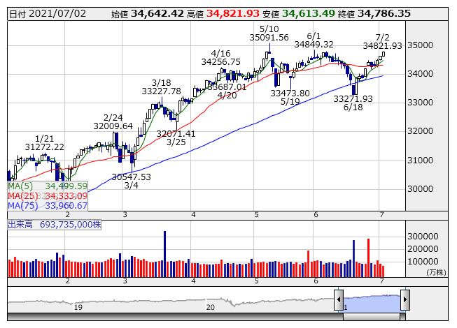 【市況】米国市場データ NYダウは152ドル高と過去最高値を更新 (7月2日)
