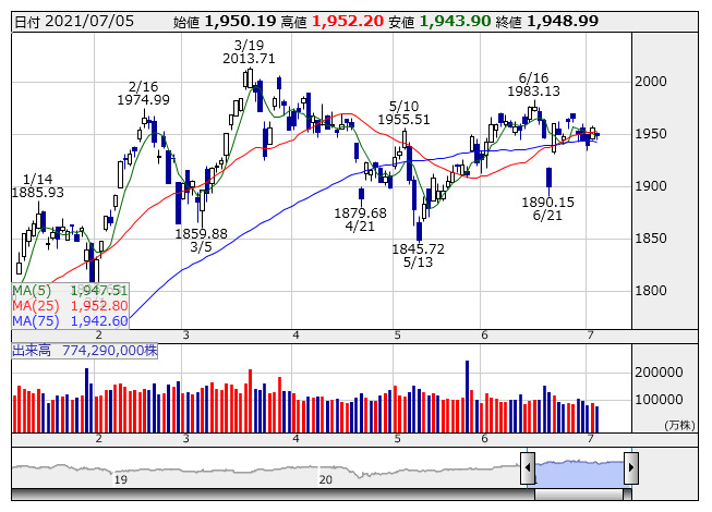 【市況】TOPIX先物テクニカルポイント(6日夜間取引終了時点)