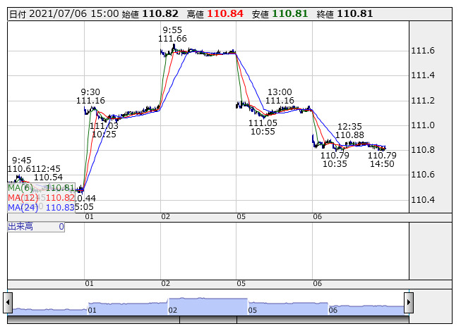 2021年07月06日15時01分 【通貨】外為:1ドル110円81銭前後と小幅なドル安・円高で推移 米ドル/円 <5分足> 「株探」多機能チャートより 6日の外国為替市場のドル円相場は午後3時時点で1ドル=110円81銭前後と、前日午後5時時点に比べ9銭の小幅なドル安・円高。ユーロ円は1ユーロ=131円67銭前後と7銭の小幅なユーロ高・円安で推移している。 株探ニュース