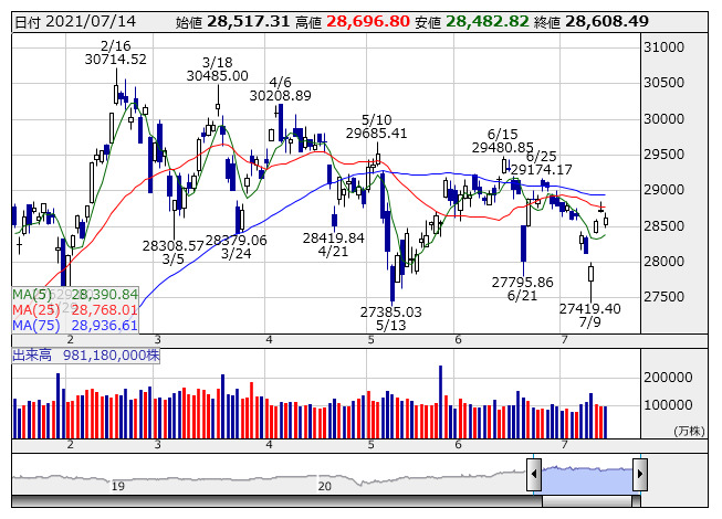 【市況】日経225先物:14日19時=40円高、2万8580円