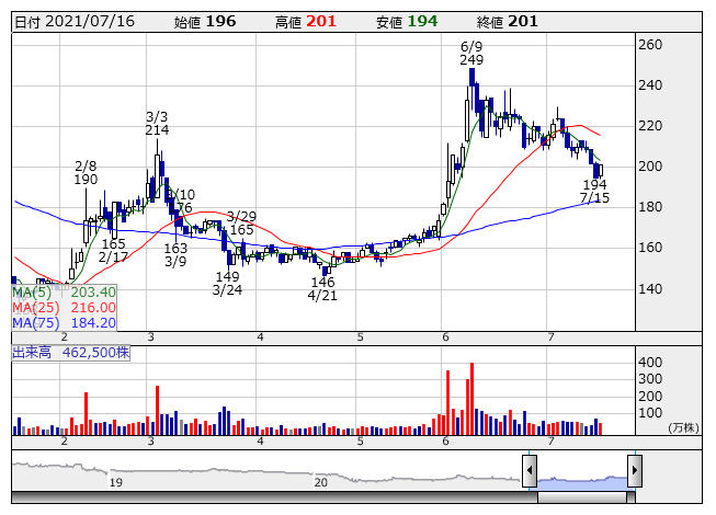 ひらまつ <日足> 「株探」多機能チャートより