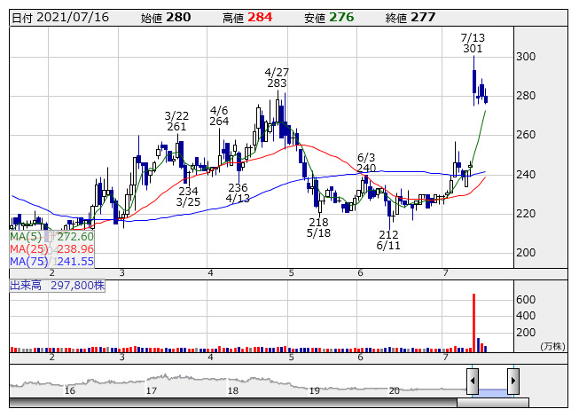 <7351> グッドパッチ 東M 21/ 8 296 374 26.4 7/15
