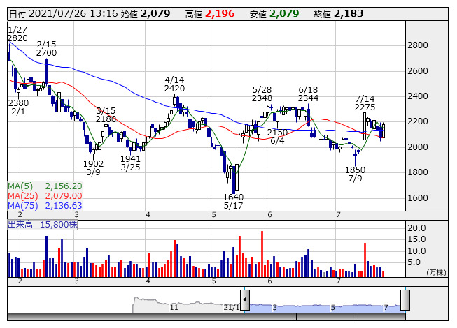 2021年07月26日13時20分 【材料】トヨクモ---大幅反発、新たに貸借銘柄に選定で売買活性化に期待 トヨクモ <日足> 「株探」多機能チャートより <4058> トヨクモ 2185 +106 大幅反発。東証から新たに貸借銘柄に選定されたと発表している。実施は26日売買分から。同社は既にマザーズ市場の制度信用銘柄に選定されている。貸借銘柄選定に伴い、株式の流動性や需給が向上し、売買が活性化するとの期待から買いが入っている。同社株は14日に直近高値(2275円)を付けてから軟調に推移しており、選定を機に押し目買いも入っているようだ。 《TY》 提供:フィスコ