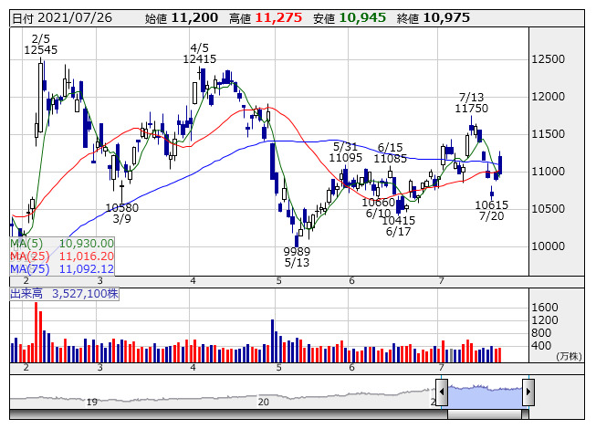 米国株式市場は続伸。ダウ平均は82.76ドル高の35144.31ドル、ナスダックは3.72ポイント高の14840.71で取引を終了した。6月新築住宅販売件数がパンデミック下で最低水準となったほか、ダラス連銀製造業活動指数も予想外に悪化した結果に失望し、寄り付き後、下落。しかし、企業の好決算への根強い期待に、上昇に転じた。民主党上院のシューマ?院内総務が超党派のインフラ案の法制化を公約すると発言すると、回復期待も強まり引けにかけて上げ幅を拡大し、ダウ、ナスダック総合指数は史上最高値を更新して終了。