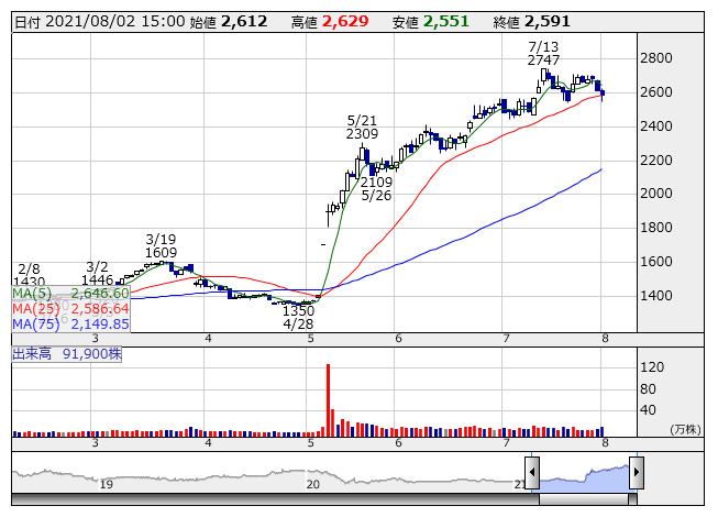 極東貿易 <日足> 「株探」多機能チャートより■会社概要
