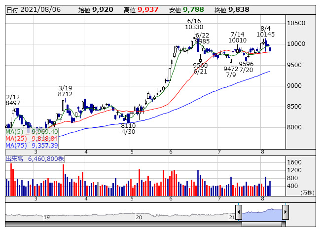 <6988> 日東電 38.12ドル 8411円 (21円)