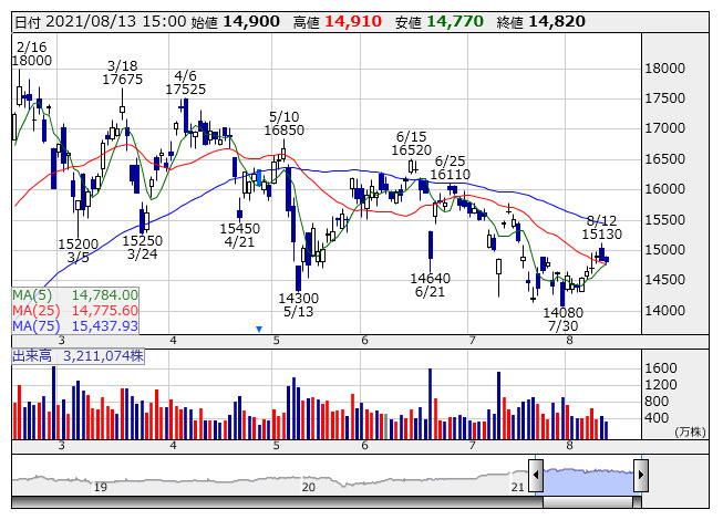 銘柄名 株価 前日比 (比率) 5日移動平均 25日移動平均