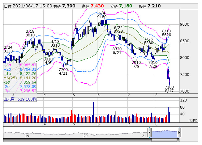 【特集】急落後のリバウンド狙う、ボリンジャー【-3σ】ブレイク銘柄 12選出 <テクニカル特集> 8月17日版