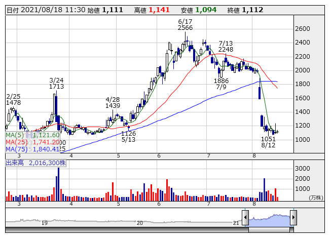 シンバイオ <日足> 「株探」多機能チャートよりシンバイオ製薬<4582>は17日、現在実施中の小児を対象としたアデノウイルス感染症(AdV感染症)に対する抗ウイルス薬ブリンシドフォビル注射剤(BCV IV)の国際共同第II相臨床試験において2021年8月16日(米国太平洋標準時)FPI(First Patient In)を達成したことを発表した。