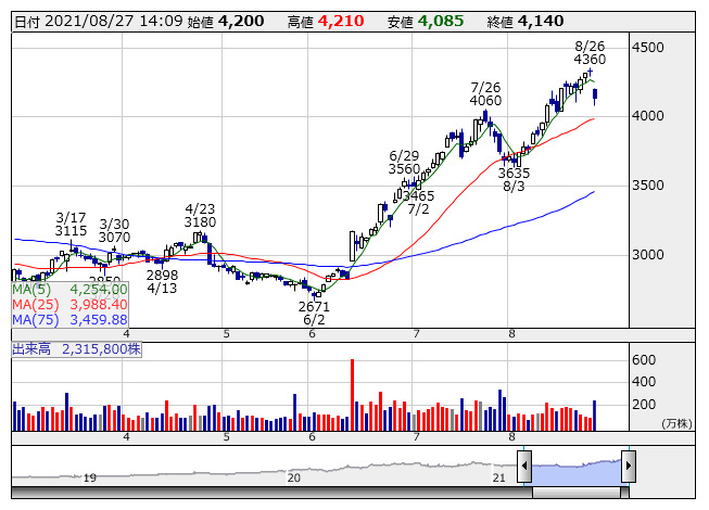 2021年08月27日14時08分 【材料】神戸物産が4日ぶり反落、7月営業利益15%増も伸び率鈍化 神戸物産 <日足> 「株探」多機能チャートより 神戸物産<3038>は大幅安で4日ぶりに反落している。26日の取引終了後に発表した7月度の営業利益が前年同月比14.8%増の18億9700万円と好調だが、前月の同26.0%増から伸び率が鈍化しており、これが嫌気されている。 業務スーパーの新規出店が5店舗あり、店舗数が前年同月に比べて67店舗増加したことで売上高は同11.6%増の310億9700万円となった。また、商品動向では「冷凍ブルーベリー」「冷凍ほうれん草」などの冷凍果物や冷凍野菜のほか、アイス類や飲料などの夏物商材も好調に推移した。 出所:MINKABU PRESS